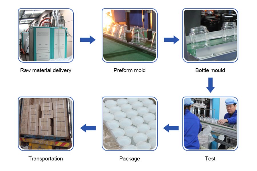 Gracepack offers a one-stop solution from design development to production. We make sure that each plastic bottle and jar undergo 100% inspection before shipment. Our factory is also certified by BSCI, our products are also approved by HACCP, LFGB, and FDA. Our production process includes: